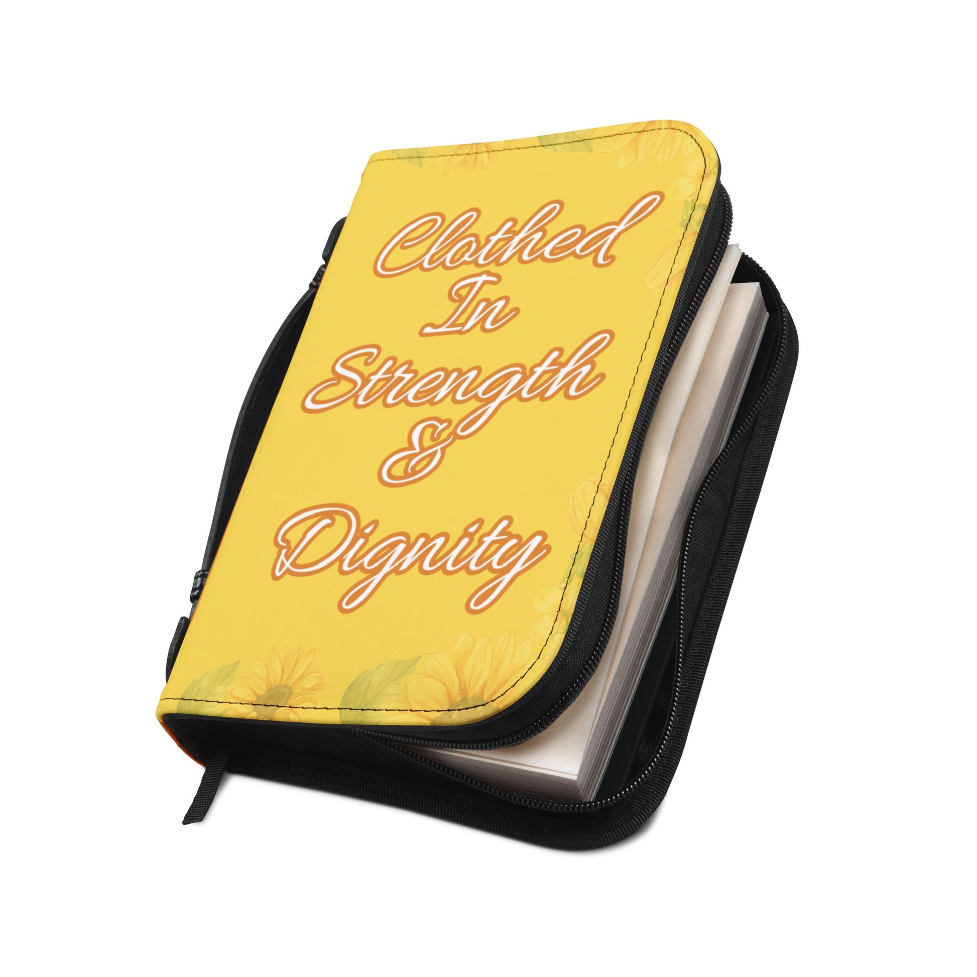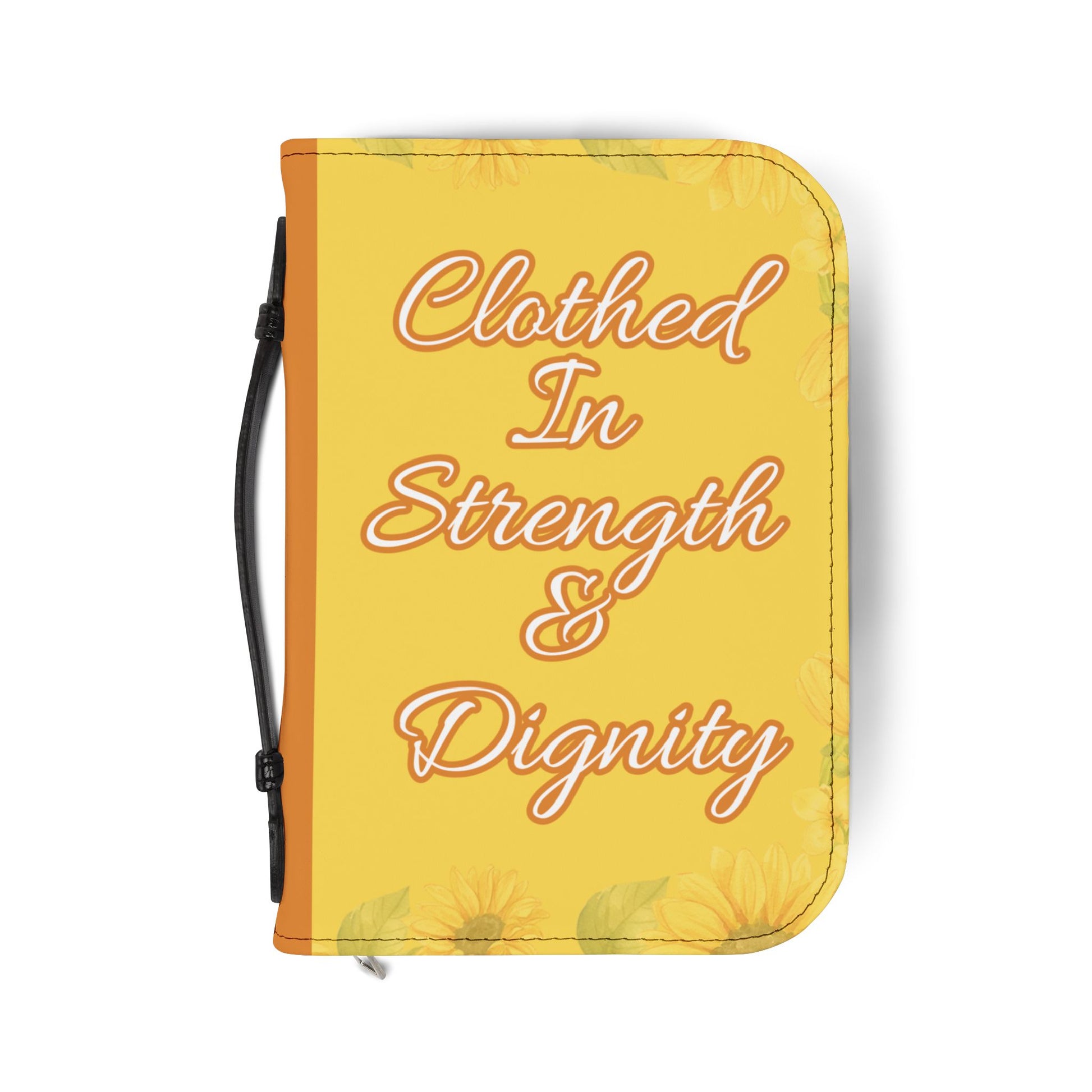 Carry the Word in style and protection with our Strength & Dignity Bible Cover. Designed with faith and beauty in mind, this premium PU leather cover features elegant floral artwork and a timeless scripture reminder from Proverbs 31:25. Perfect for personal study, Sunday service, or as a meaningful gift for a loved one.